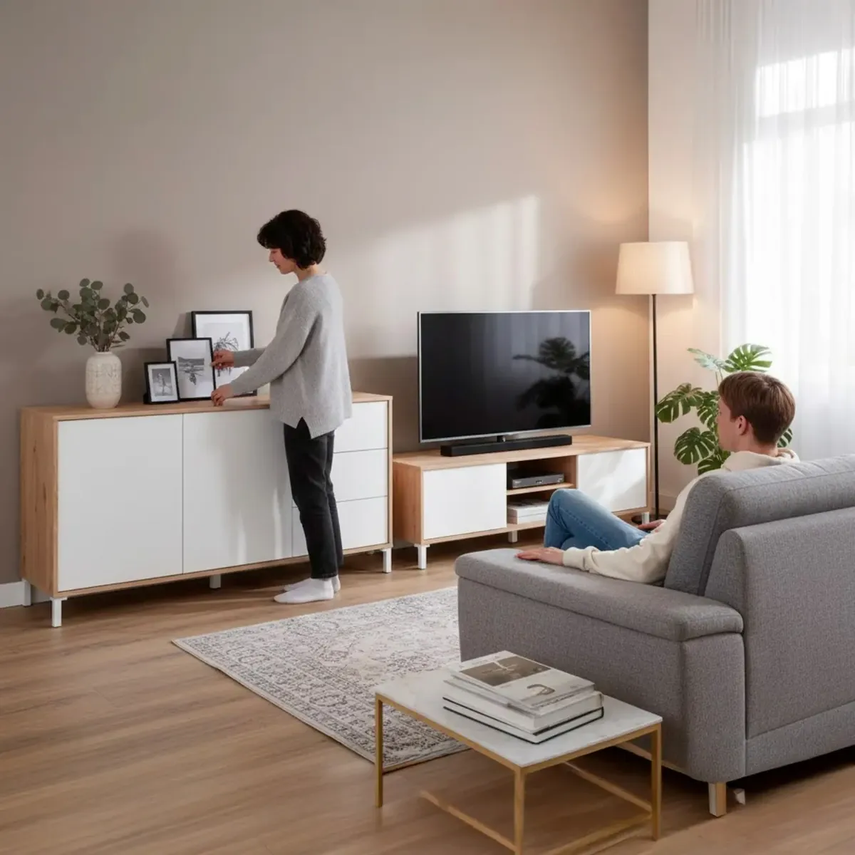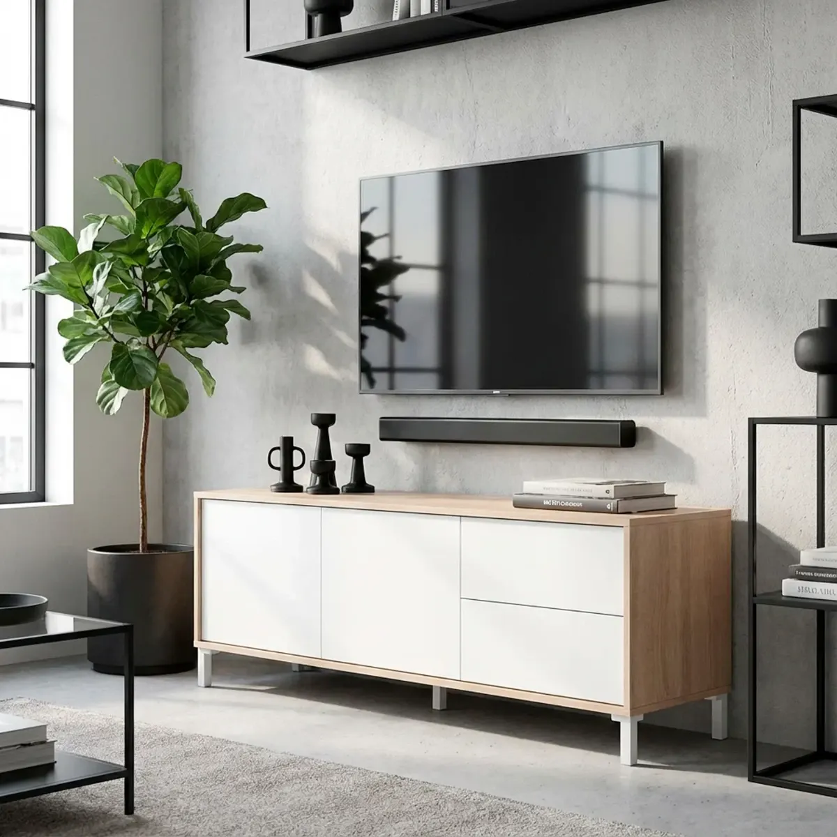 Mobile Tv Credenza Soggiorno Porta Televisione Madia Design Moderno Arredo Casa Mobile Basso Tv Melaminico Scandinavo Salotto Compatto Contenitore Multimediale 130 x 41 x 47 Cm