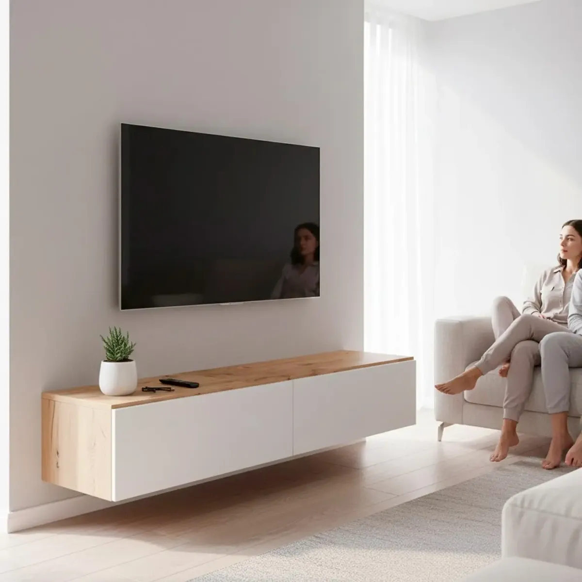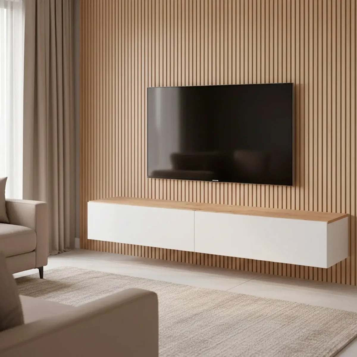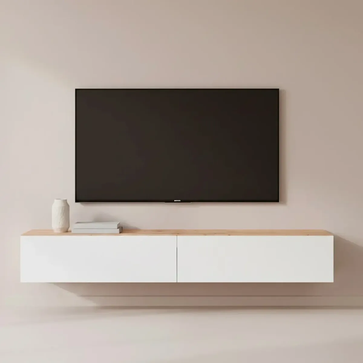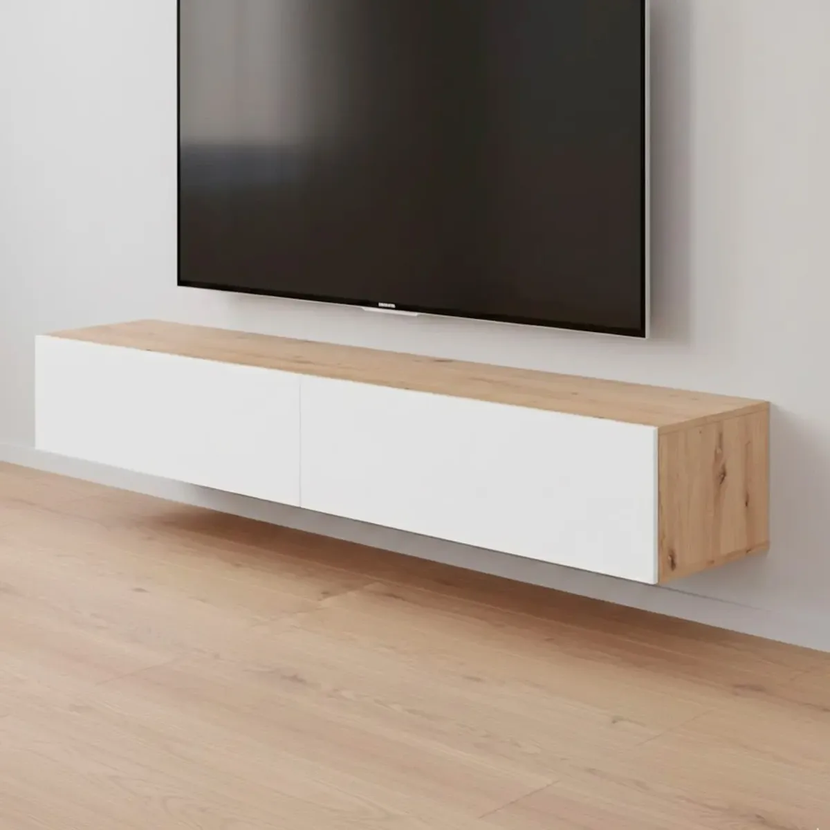 Mobile TV Sospeso Da 180 Cm Parete Attrezzata Con 2 Ante Push Porta TV Moderno In Pannelli Melaminici E1 Per Salotto Soggiorno Design Minimal 180 x 34,5 x 28 Cm