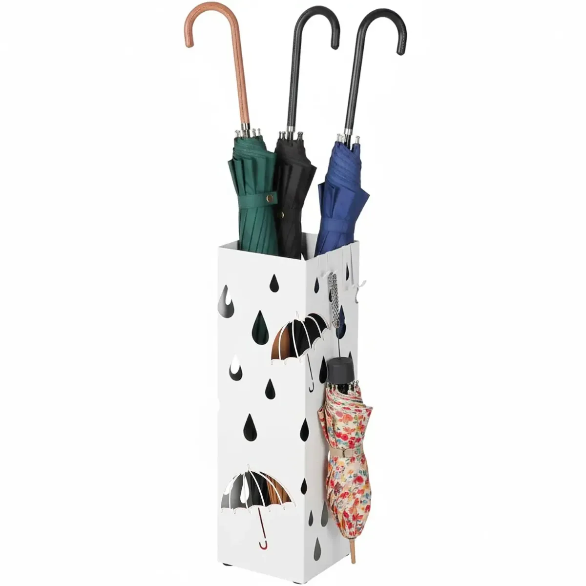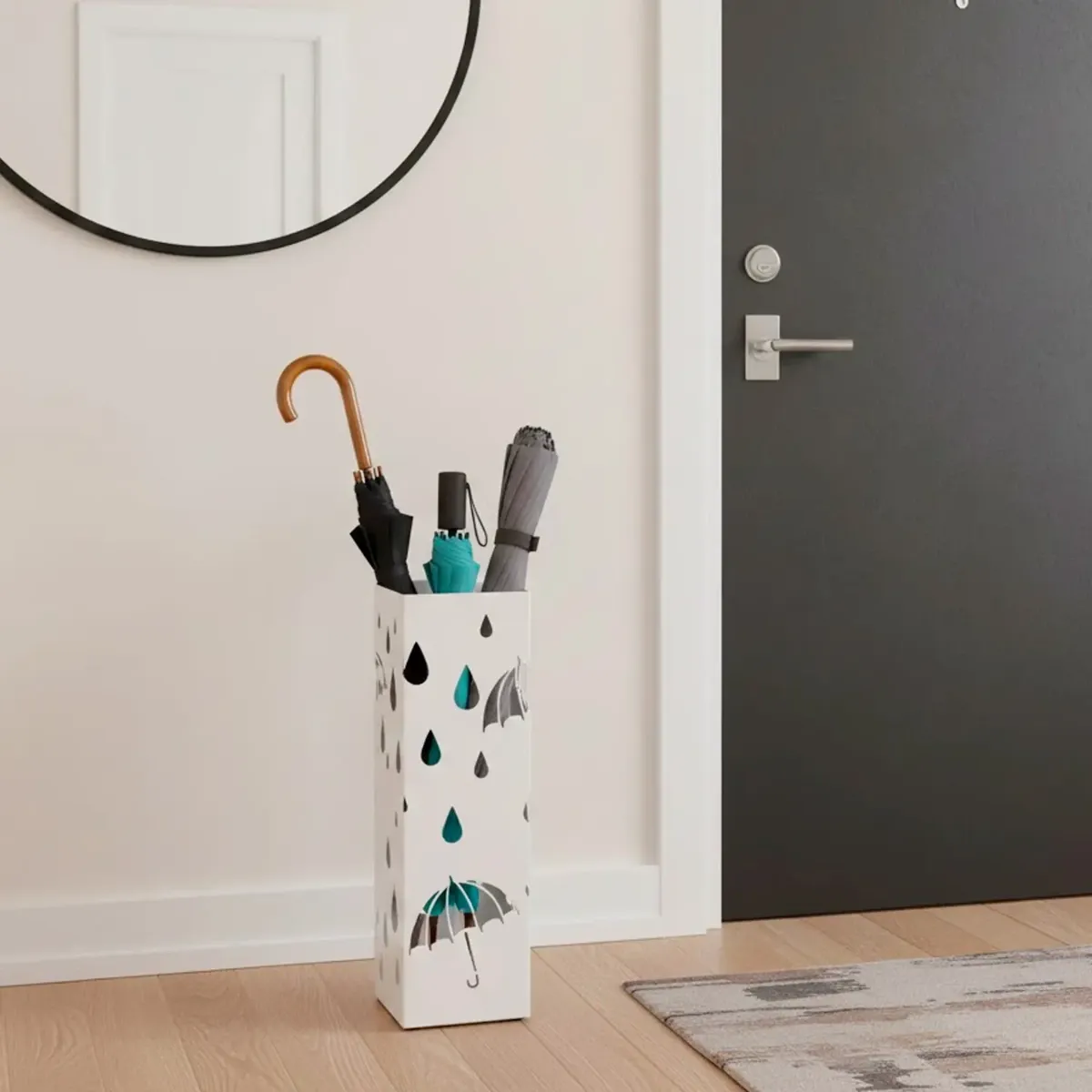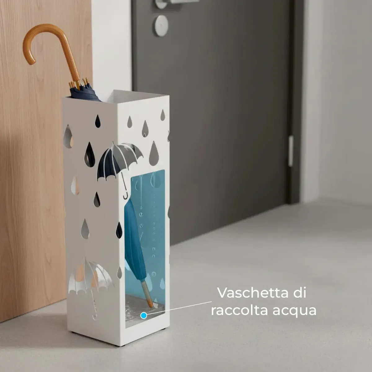 Portaombrelli In Acciaio Zincato Con Vaschetta Scolapioggia E 4 Ganci Removibili Base Antiscivolo Design Moderno Per Ingresso Casa e Ufficio 49 x 15.5 x 15.5 Cm