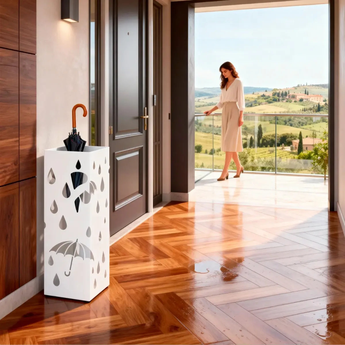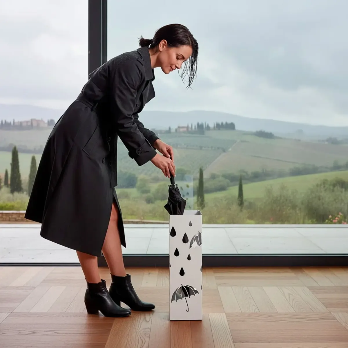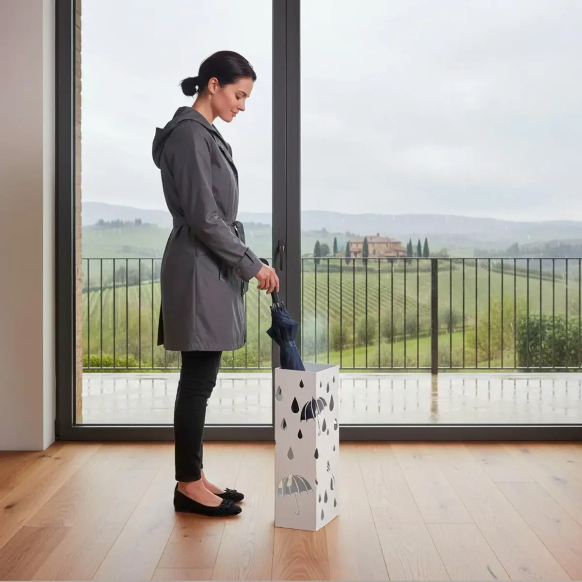 Portaombrelli In Acciaio Zincato Con Vaschetta Scolapioggia E 4 Ganci Removibili Base Antiscivolo Design Moderno Per Ingresso Casa e Ufficio 49 x 15.5 x 15.5 Cm