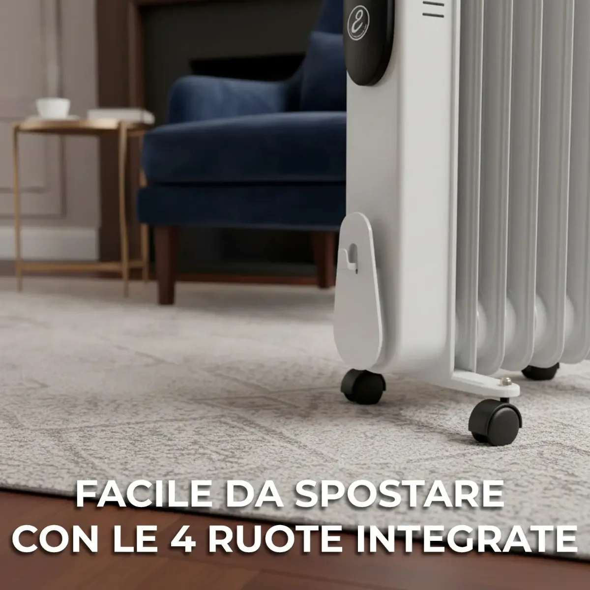 Radiatore Ad Olio Elettrico 2000W Con 9 Elementi Termostato Regolabile 3 Livelli di Potenza Silenzioso Basso Consumo Sicurezza Anti Ribaltamento Ruote E Avvolgicavo Per Ambienti fino a 60m²