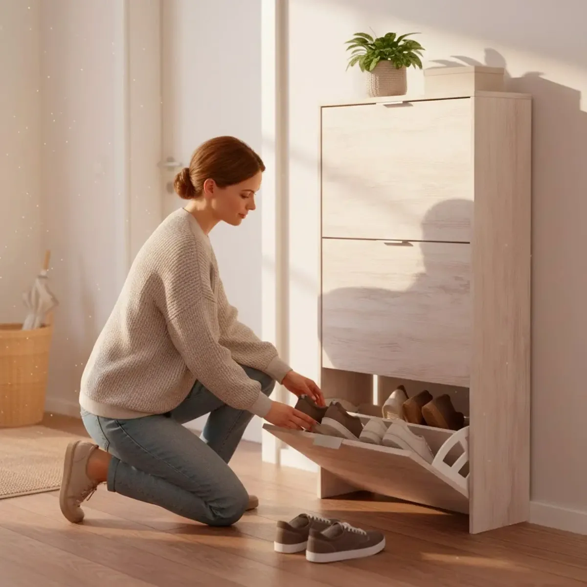 Scarpiera A Ribalta Salvaspazio 3 Ante E 6 Ripiani Mobile Portascarpe Antigraffio Fino A 20 Paia Di Scarpe Design Moderno Minimal Ingresso Corridoio Retro Porta 113 x 60 x 22 Cm