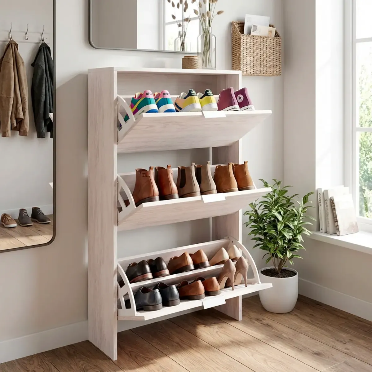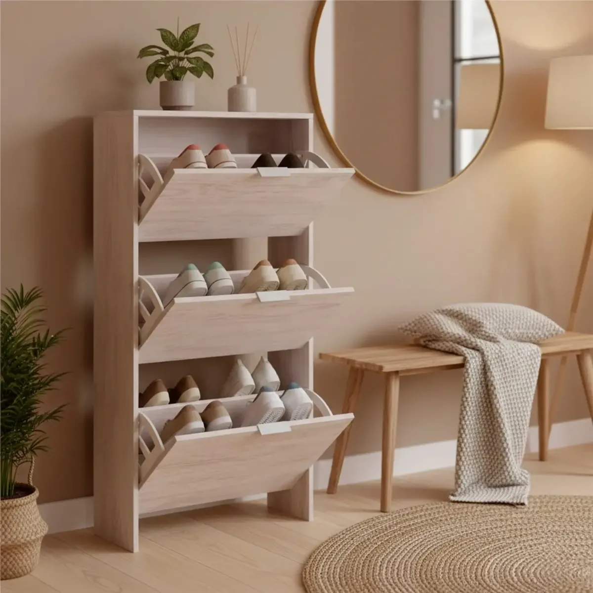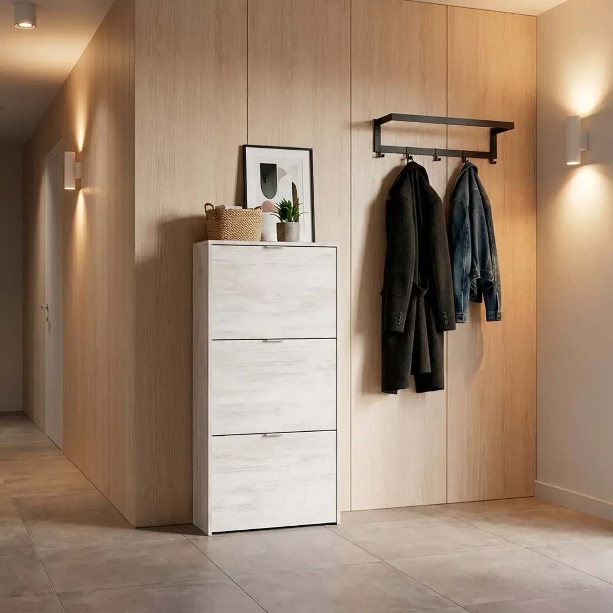 Scarpiera A Ribalta Salvaspazio 3 Ante E 6 Ripiani Mobile Portascarpe Antigraffio Fino A 20 Paia Di Scarpe Design Moderno Minimal Ingresso Corridoio Retro Porta 113 x 60 x 22 Cm