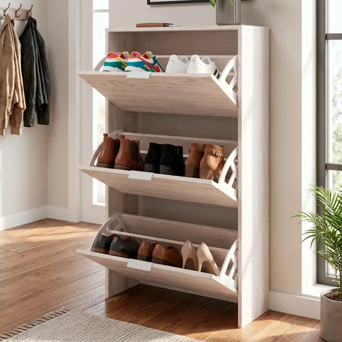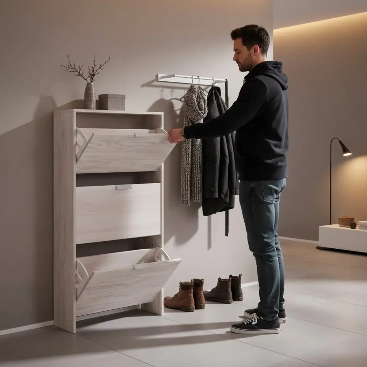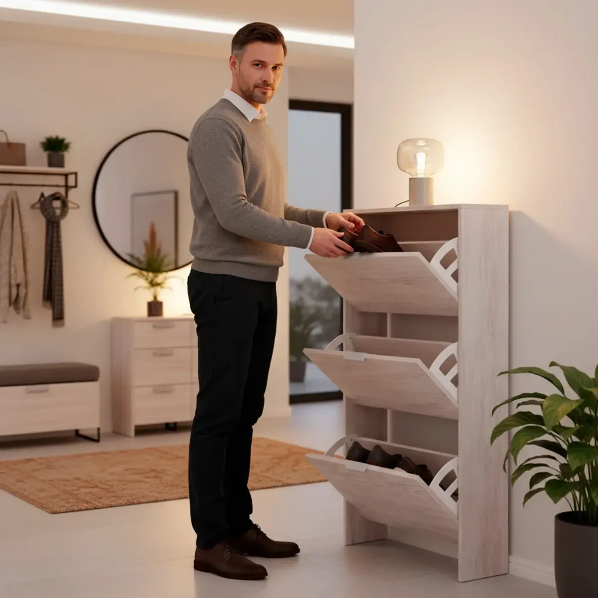 Scarpiera A Ribalta Salvaspazio 3 Ante E 6 Ripiani Mobile Portascarpe Antigraffio Fino A 20 Paia Di Scarpe Design Moderno Minimal Ingresso Corridoio Retro Porta 113 x 60 x 22 Cm