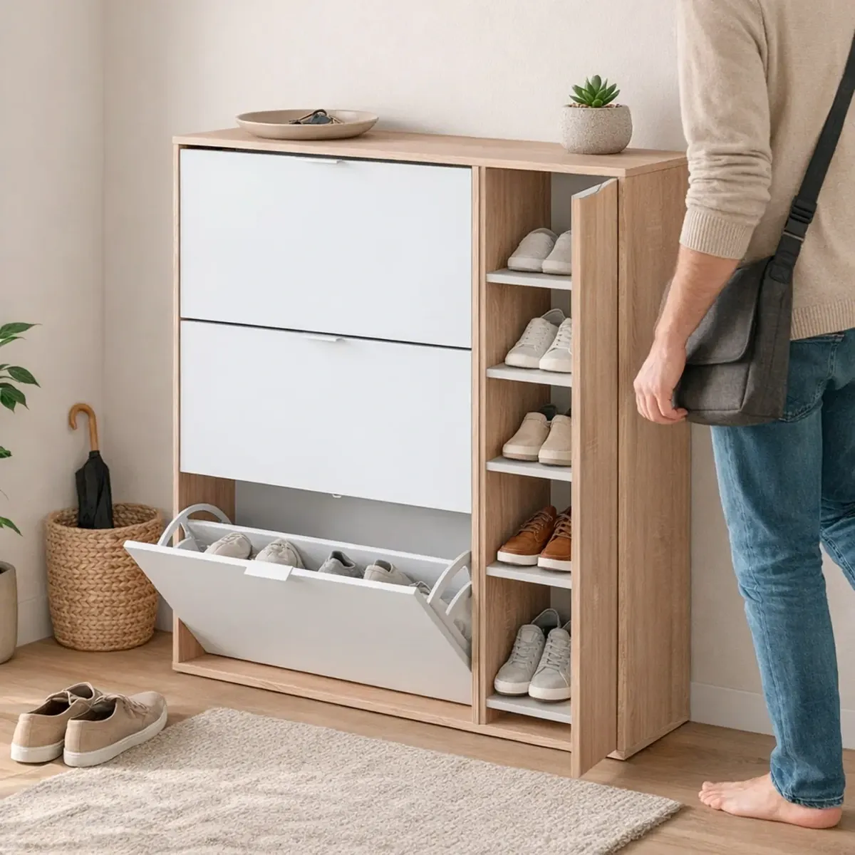 Scarpiera Salvaspazio A 3 Ribalte E 1 Anta Con Ripiani Mobile Porta Scarpe Da 30 Paia Per Ingresso Corridoio Camera Cameretta Design Moderno 106 x 115 x 22 Cm