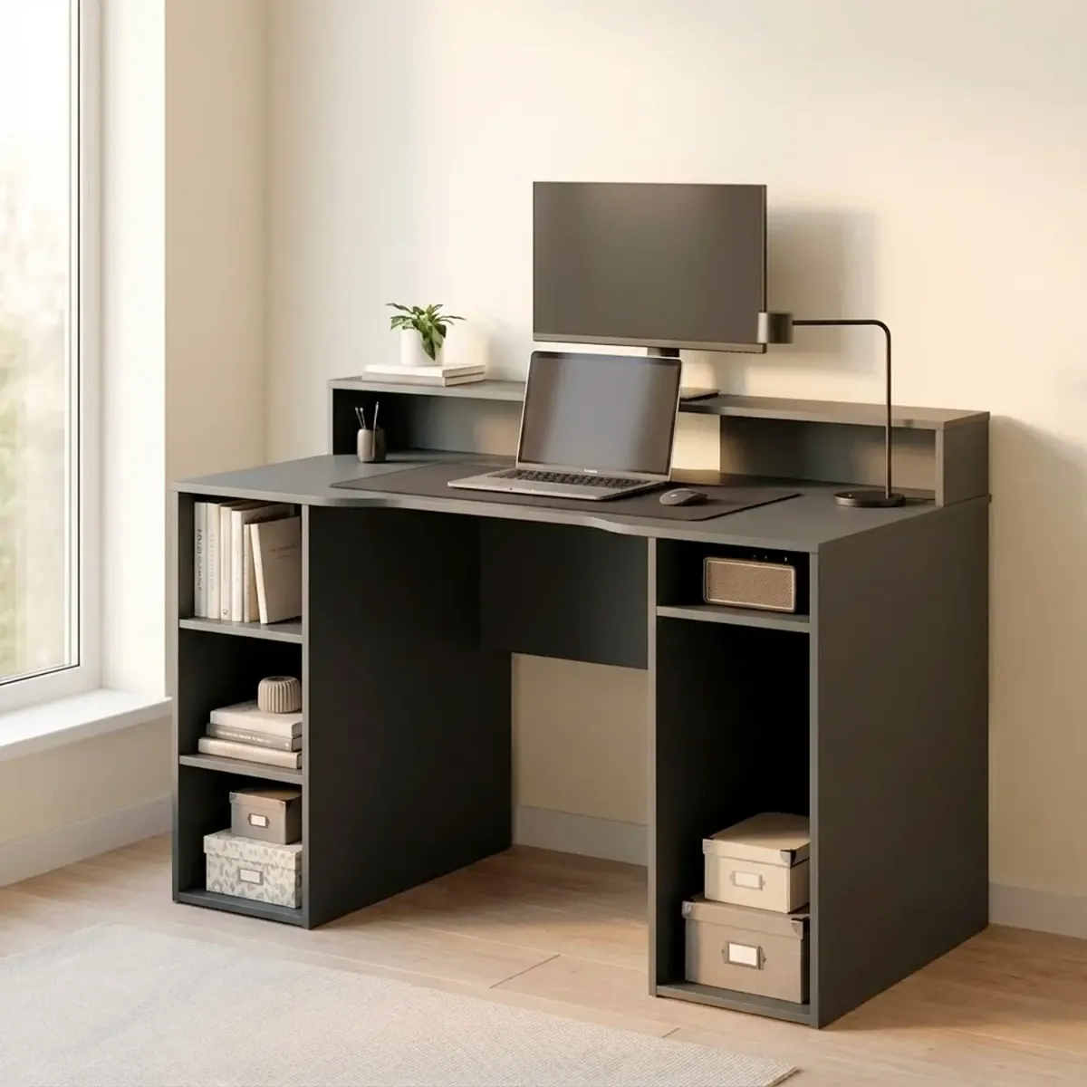 Scrivania Gaming Con Ripiani Porta PC E Supporto Monitor Con Passacavi Tavolo Gamer Reversibile Ampio Piano Ergonomico Per Setup Gaming Studio Ufficio 136 x 67 x 88 Cm