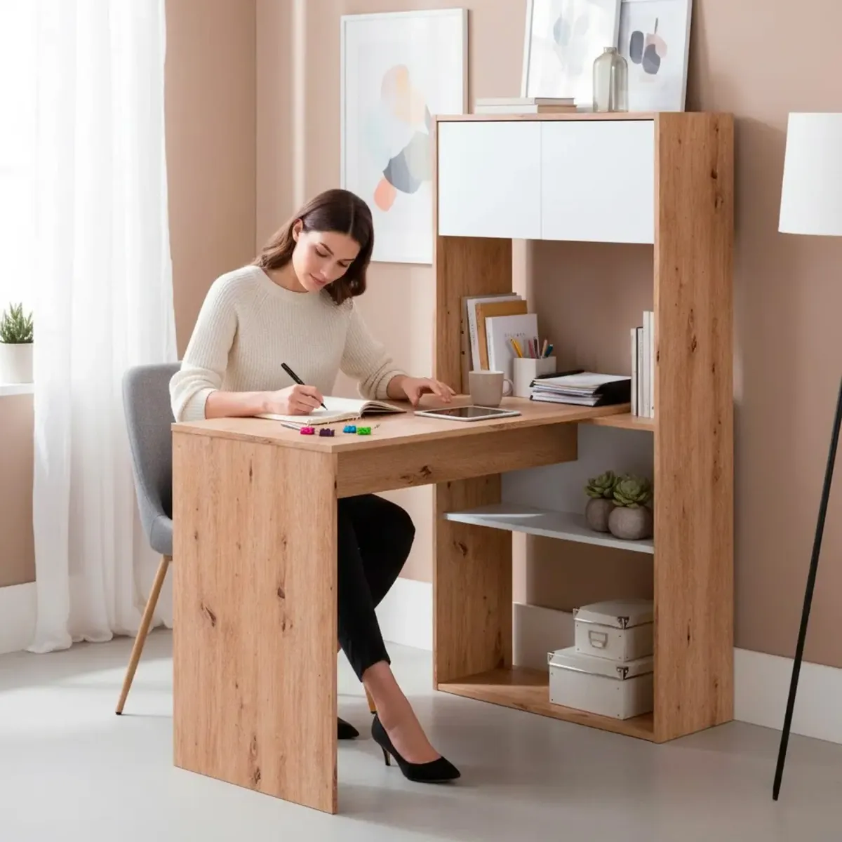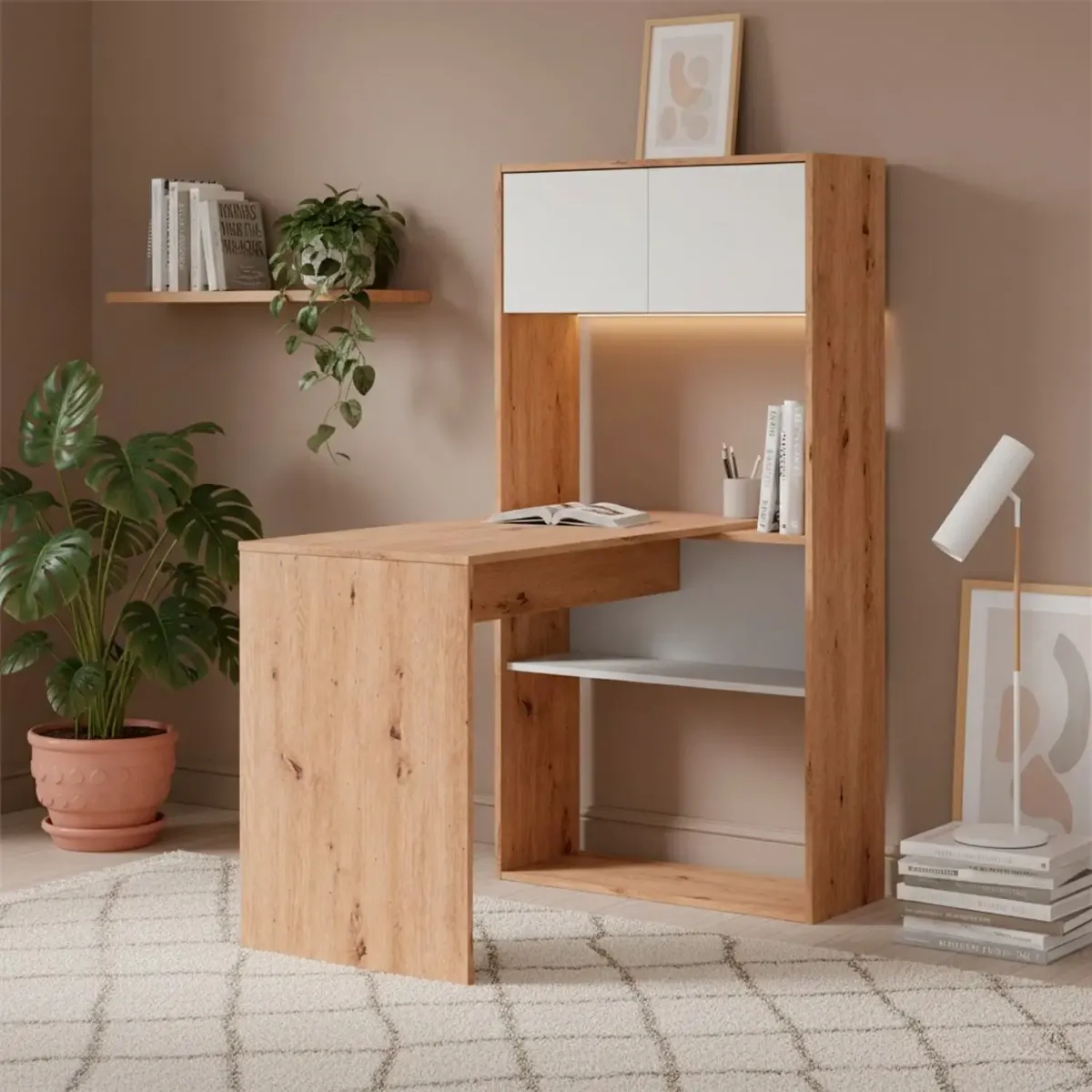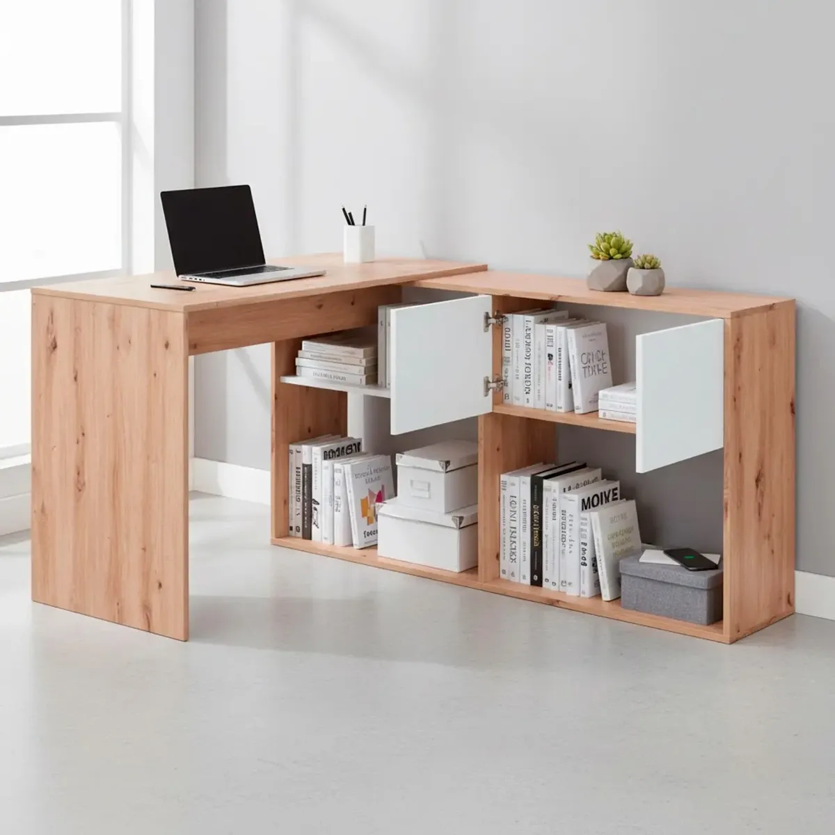 Scrivania Libreria Multiposizione Reversibile Con 2 Ante E Ripiani Tavolo Ufficio Casa Salvaspazio Con 3 Configurazioni Verticale E Orizzontale Dimensioni: 140 x 108 x 70 Cm