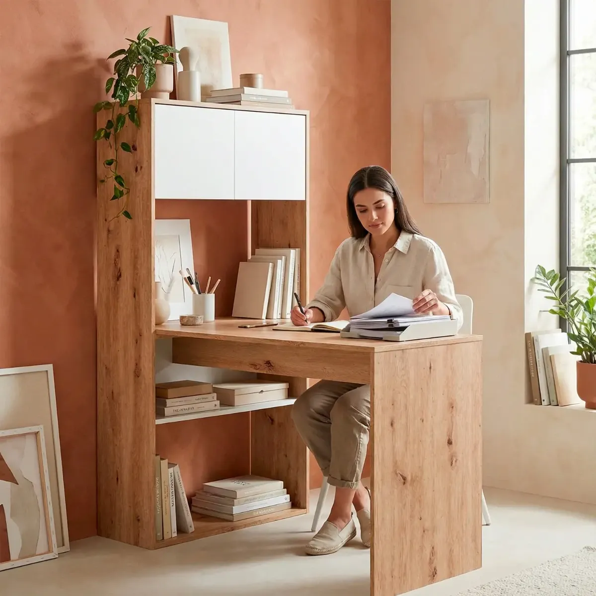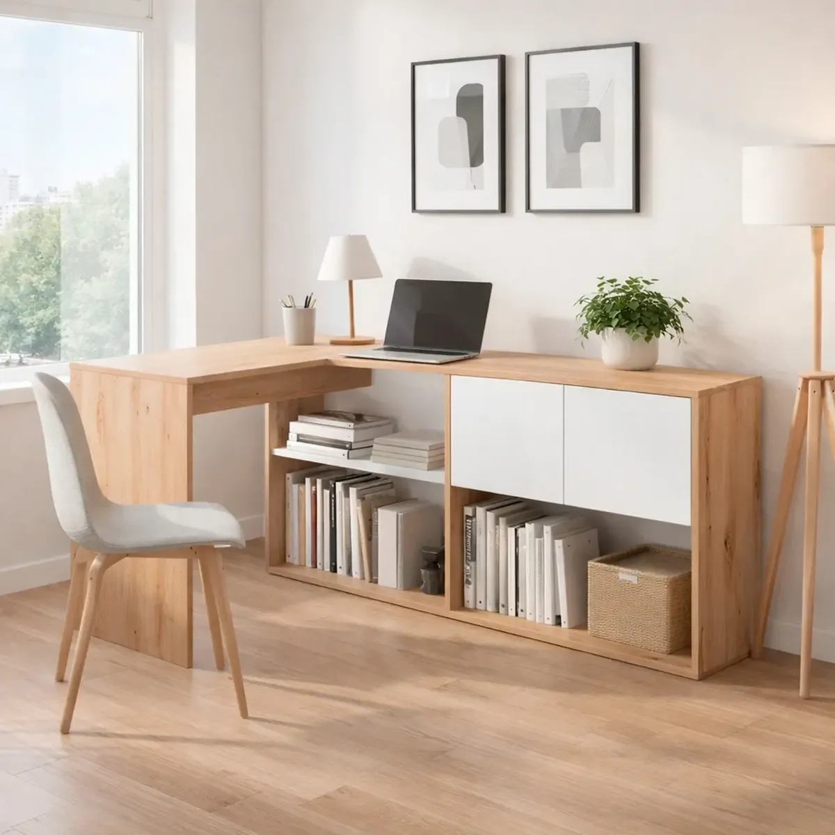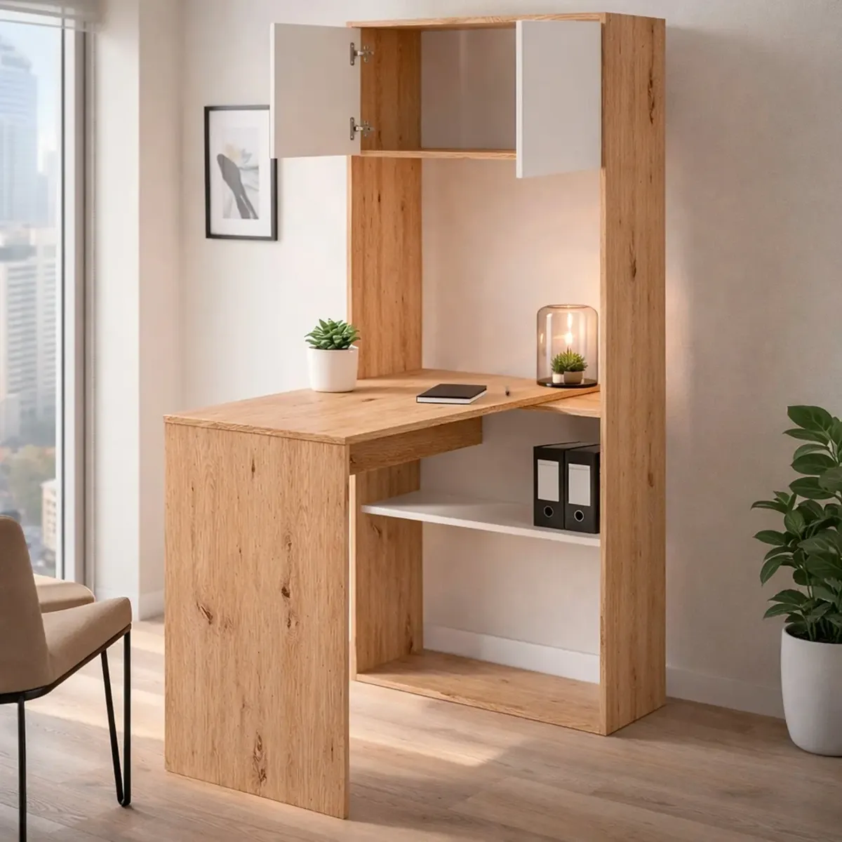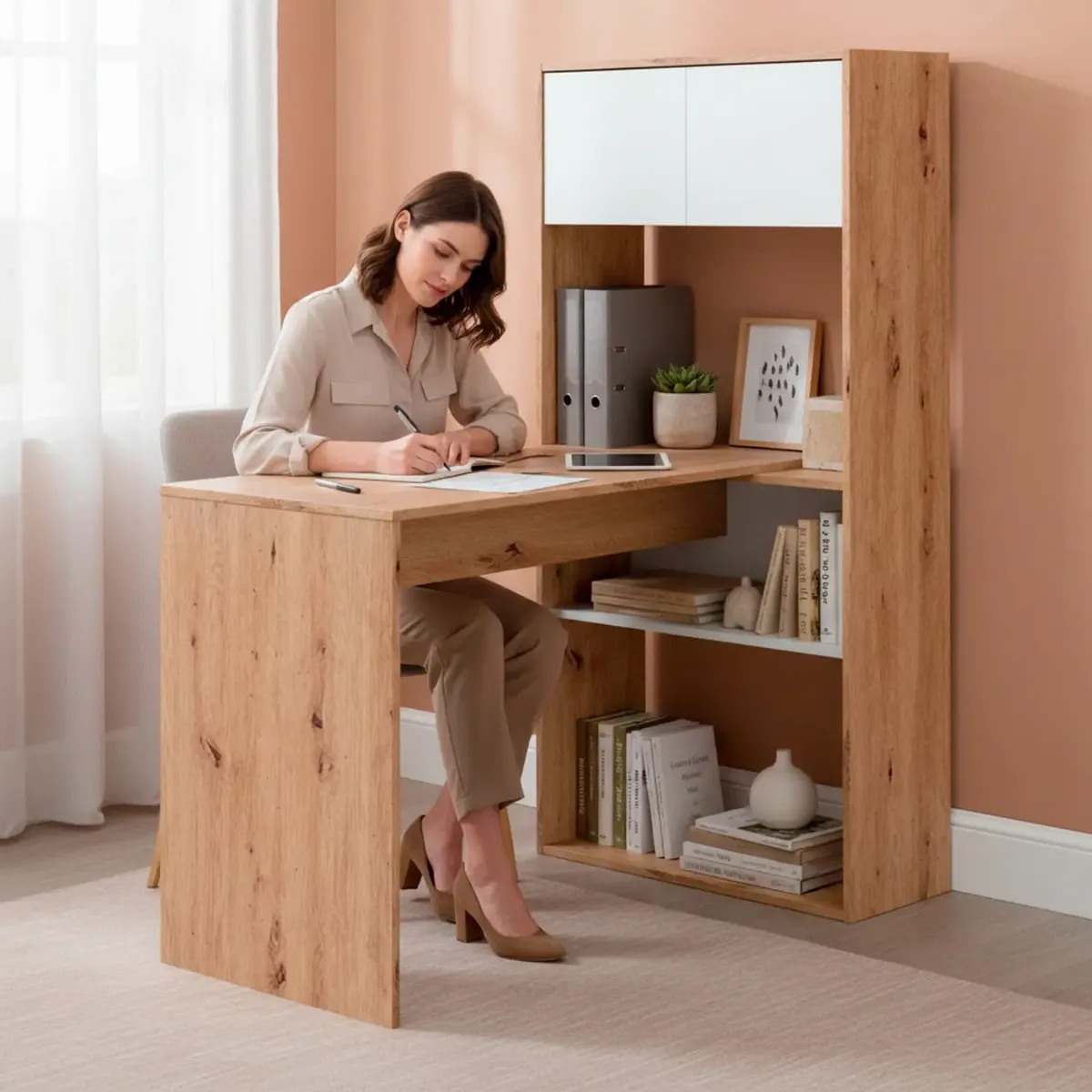 Scrivania Libreria Multiposizione Reversibile Con 2 Ante E Ripiani Tavolo Ufficio Casa Salvaspazio Con 3 Configurazioni Verticale E Orizzontale Dimensioni: 140 x 108 x 70 Cm