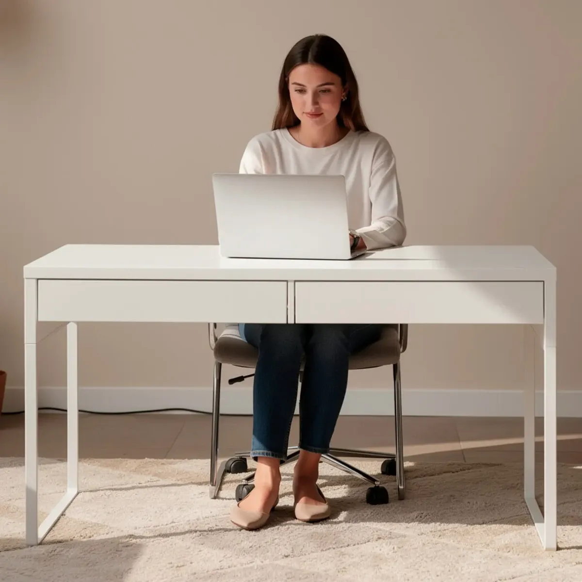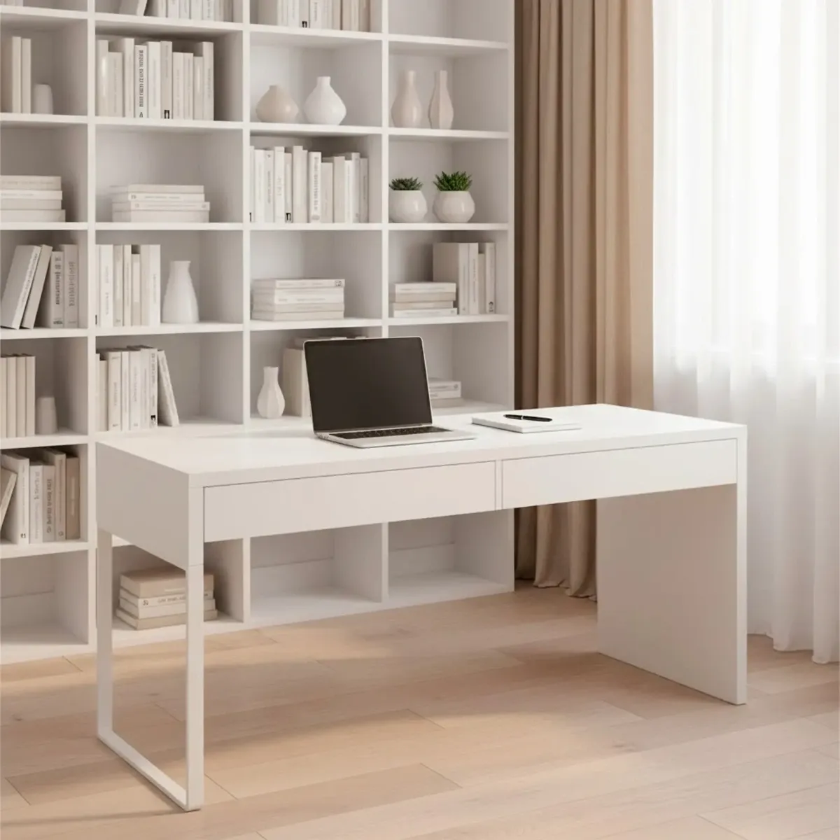 Scrivania Ufficio Home Office Studio Design Moderno Tavolo Lavoro Computer Cassetti Arredo Casa Professionale Ampia Superficie Organizzazione Minimal Elegante 138 x 50 x 75 Cm