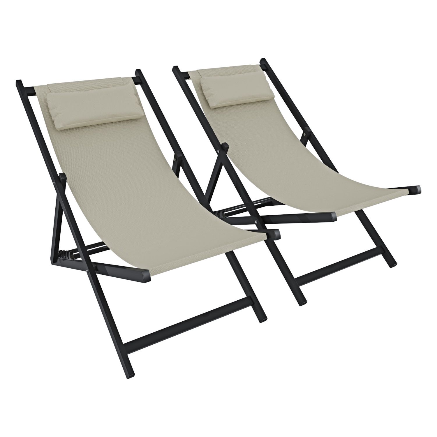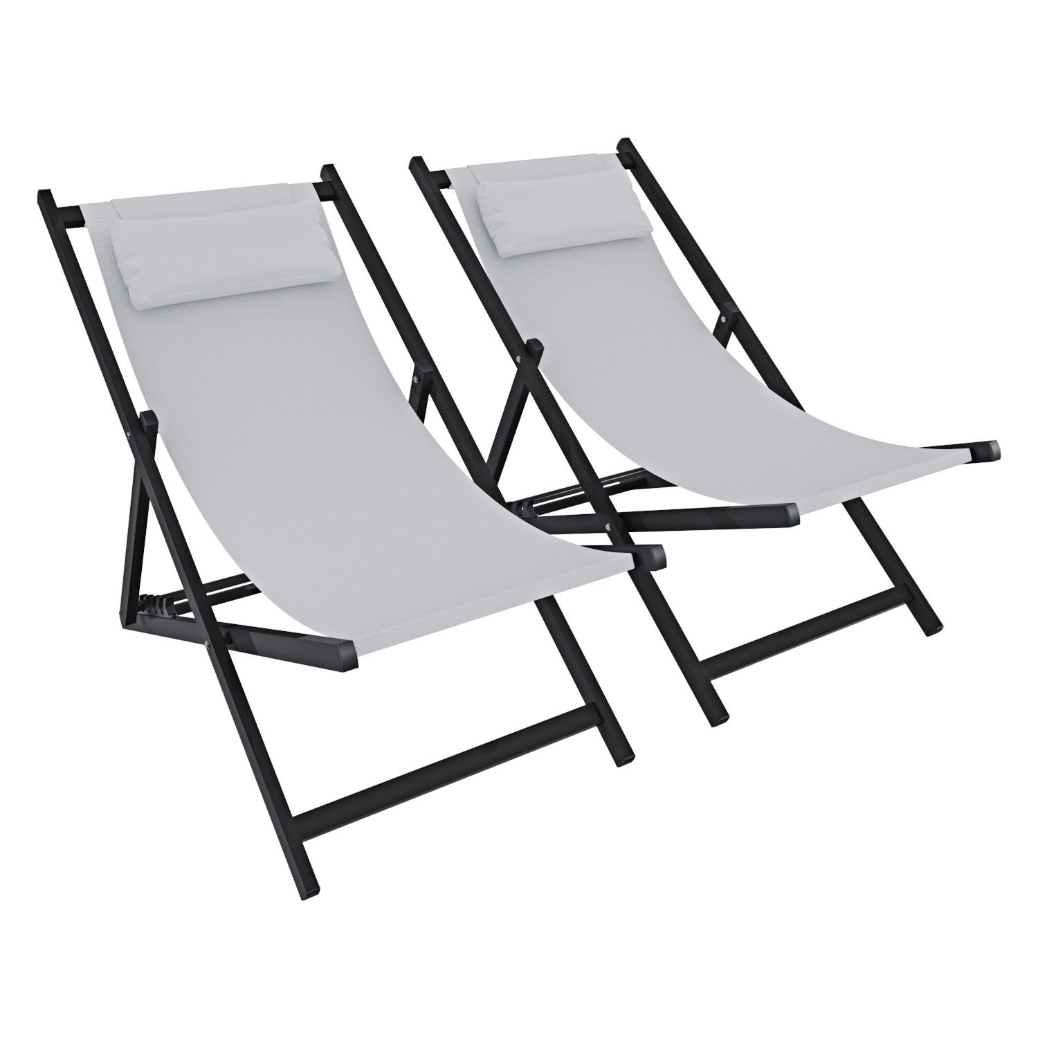 Set Di 2 Sedie Sdraio Leggera Giardino Schienale Regolabile Posizioni Pieghevole Ergonomica Cuscino Traspirante Struttura Alluminio Esterno Piscina Mare