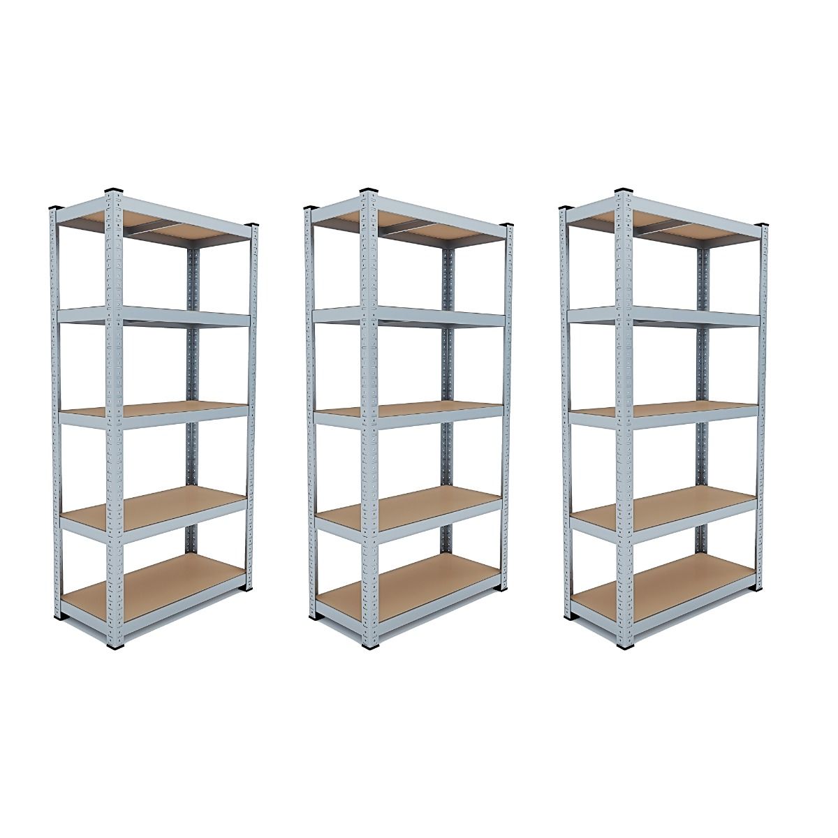 Set Di 3 Scaffale In Metallo E MDF Scaffale Ad Alta Portata Fino a 875 kg Con 5 Ripiani Regolabili Ideale Per Garage Officina Cantina Capannone Magazzino Design Modulare