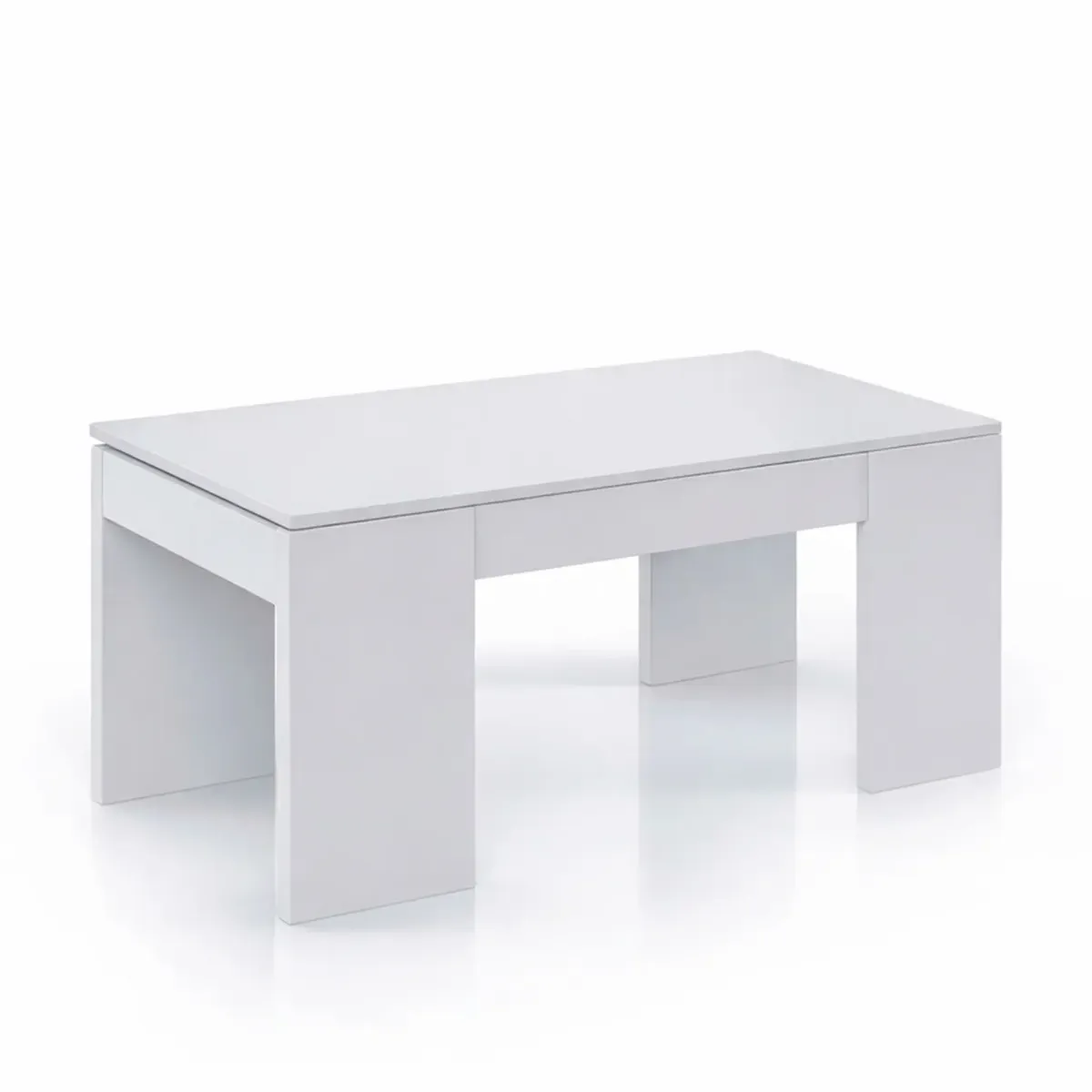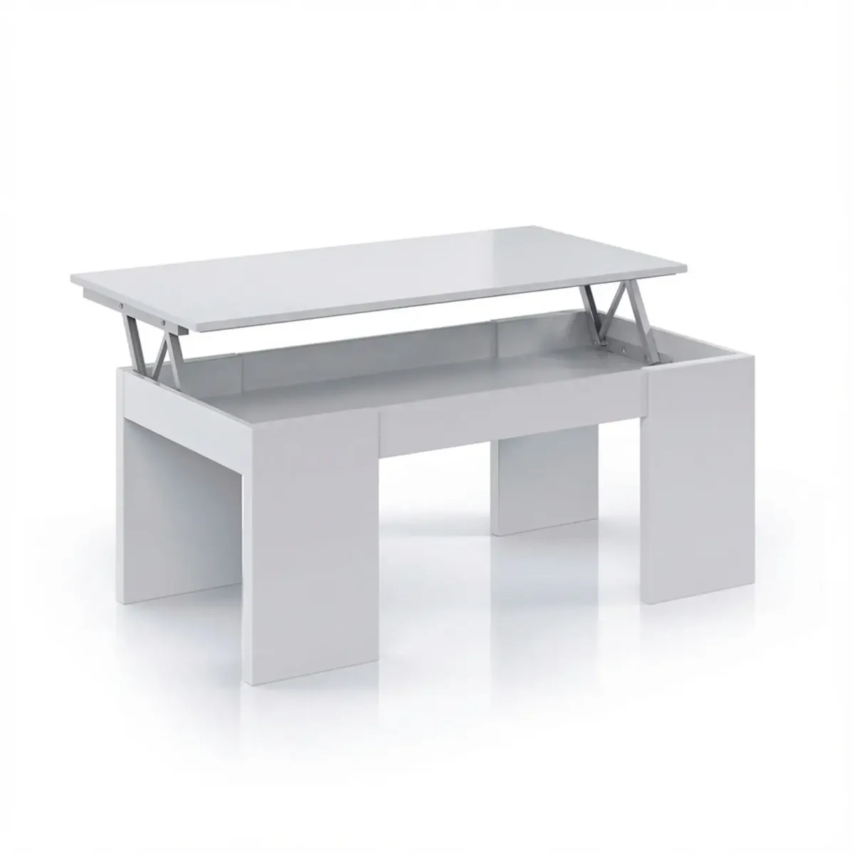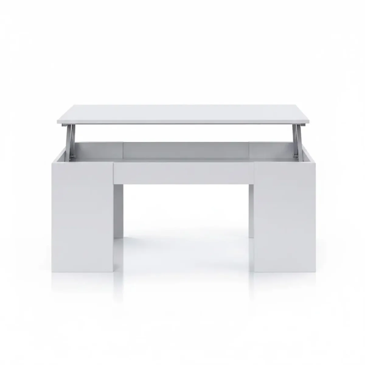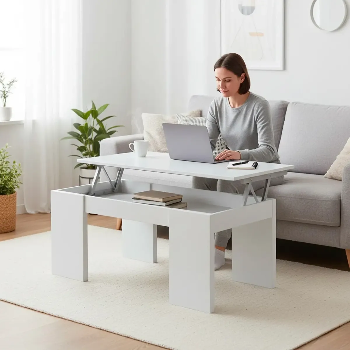 Tavolino da Caffè Con Piano Rialzabile Con Vano Contenitore Alzabile Tavolo da Salotto Moderno Salvaspazio Ideale per Mangiare Lavorare e Organizzare il Soggiorno 100 x 50 x 42 cm Bianco