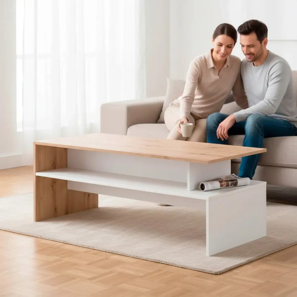 Tavolino Da Caffè Soggiorno Moderno Con Ripiano E Vani A Giorno Design Elegante E Funzionale Struttura Resistente In Melaminico Ideale Per Living Moderni 108 x 50 x 43 cm