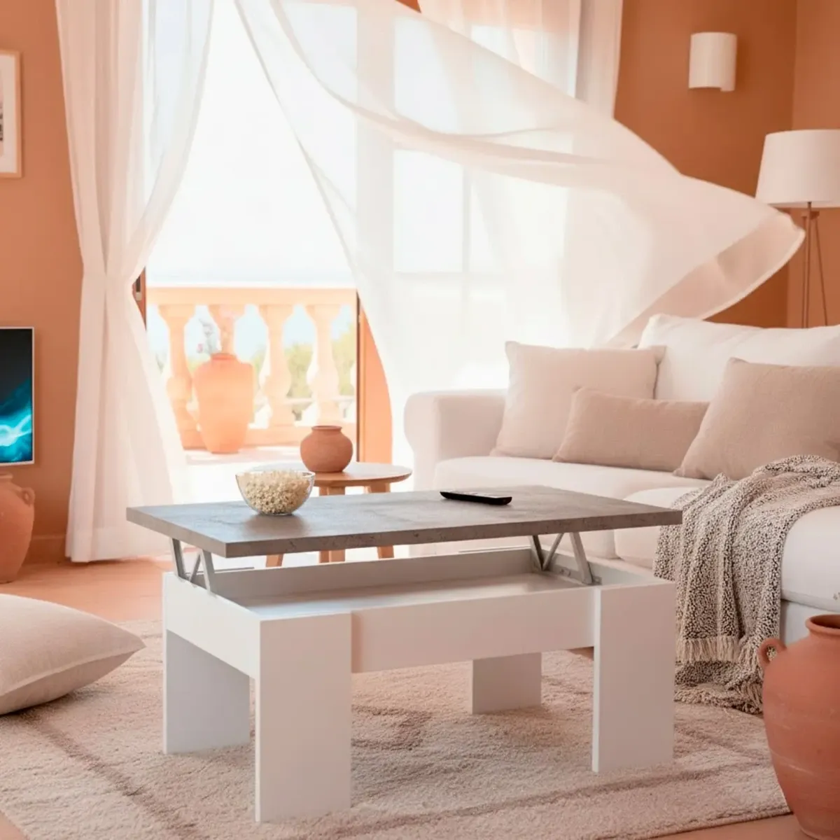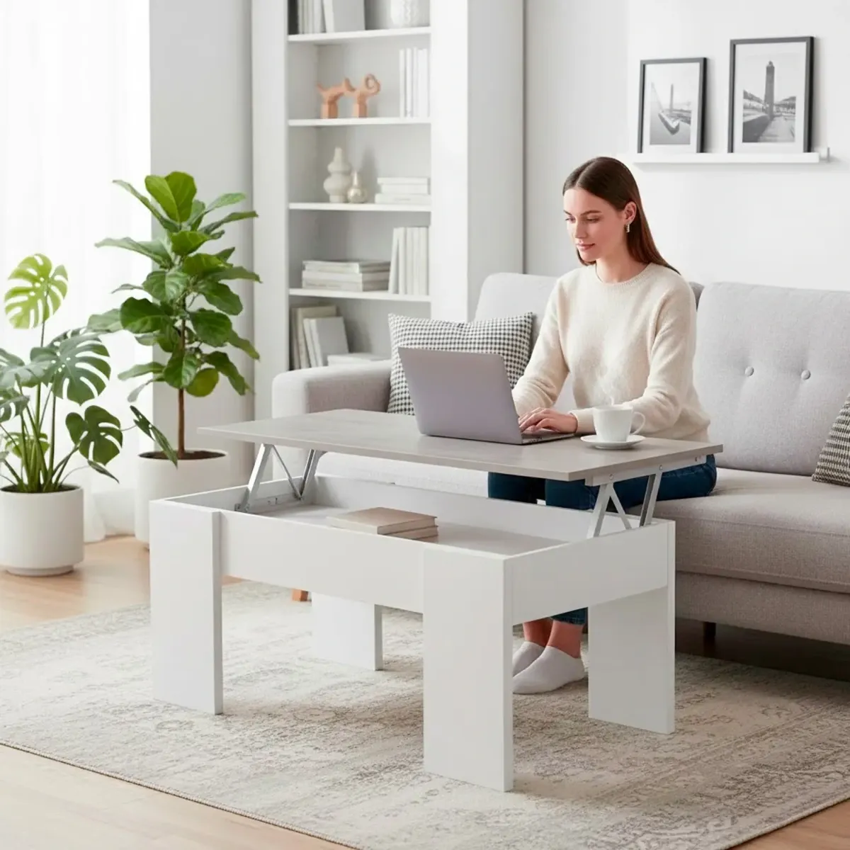 Tavolino Da Caffè Sollevabile Con Contenitore Tavolo Salvaspazio Con Piano Alzabile Per Soggiorno E Salotto Vano Portaoggetti Da Interno Mangiare Lavorare 100 x 69 x 57 Cm