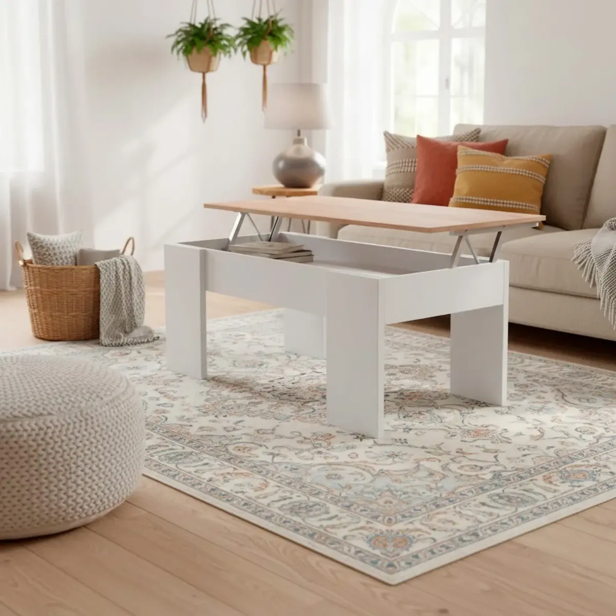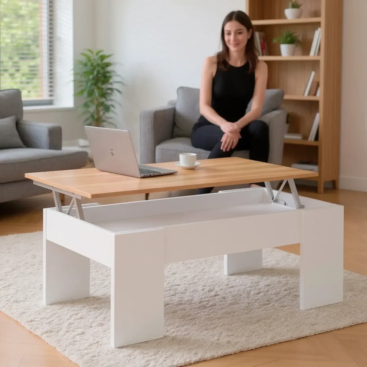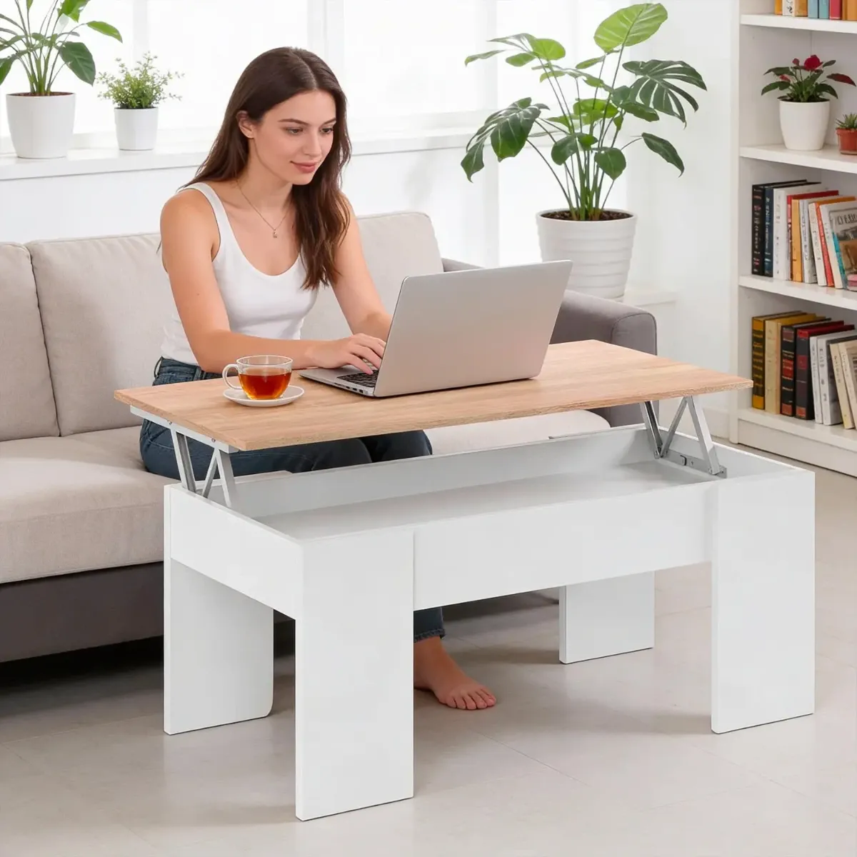 Tavolino da Salotto Alzabile Con Vano Contenitore Tavolo Multifunzione Salvaspazio Per Soggiorno E Divano Piano Sollevabile Per Lavorare e Mangiare 100 x 50 x 54–56 cm