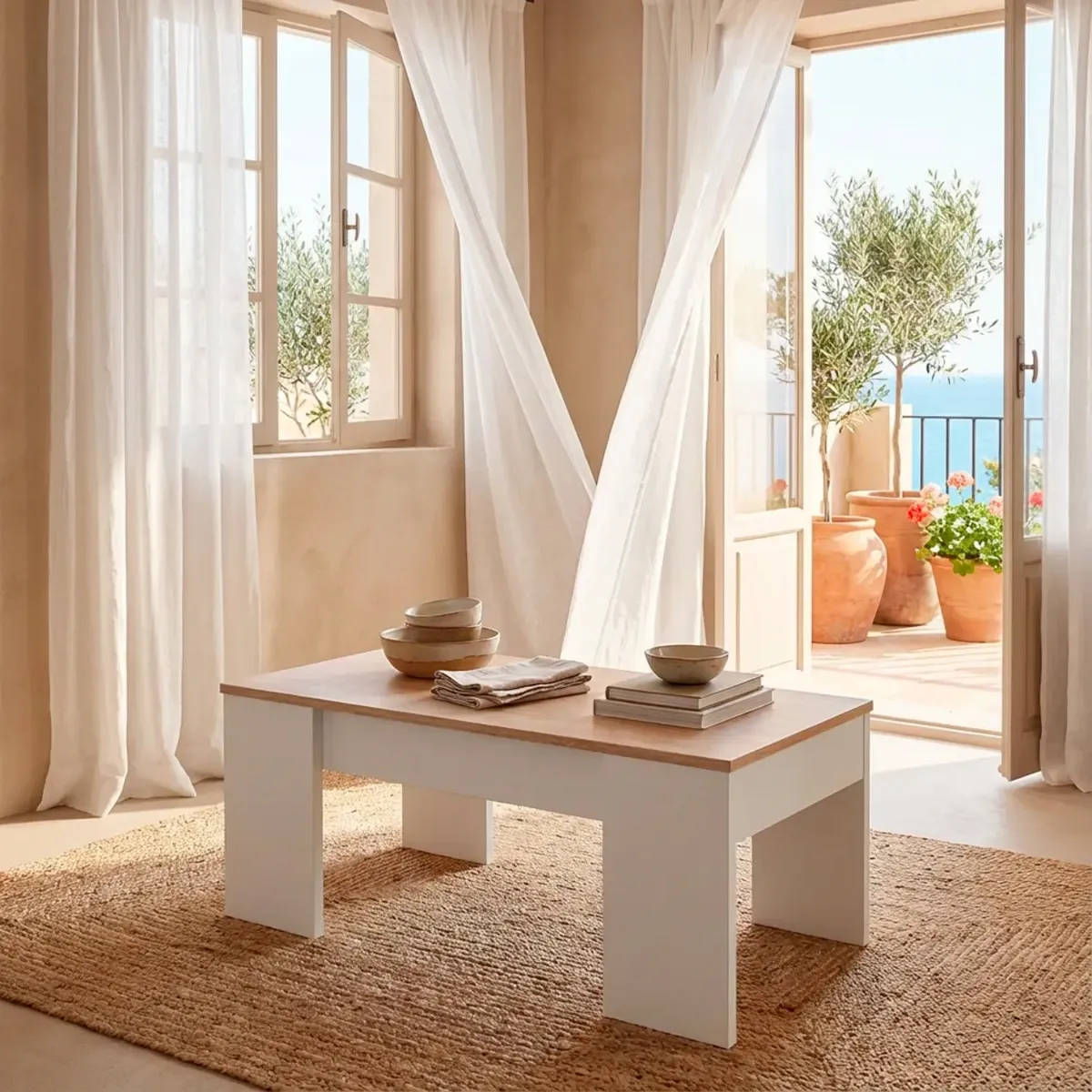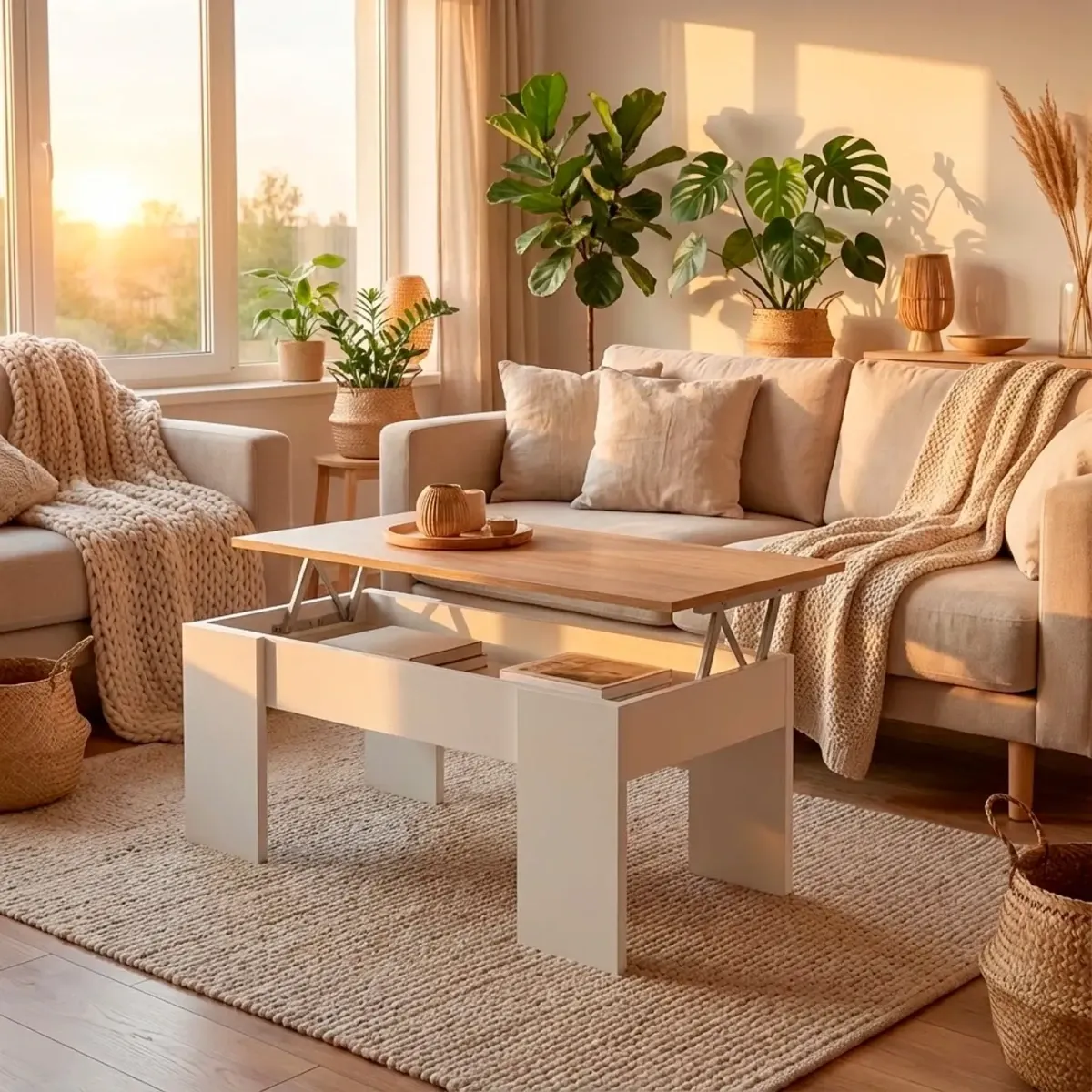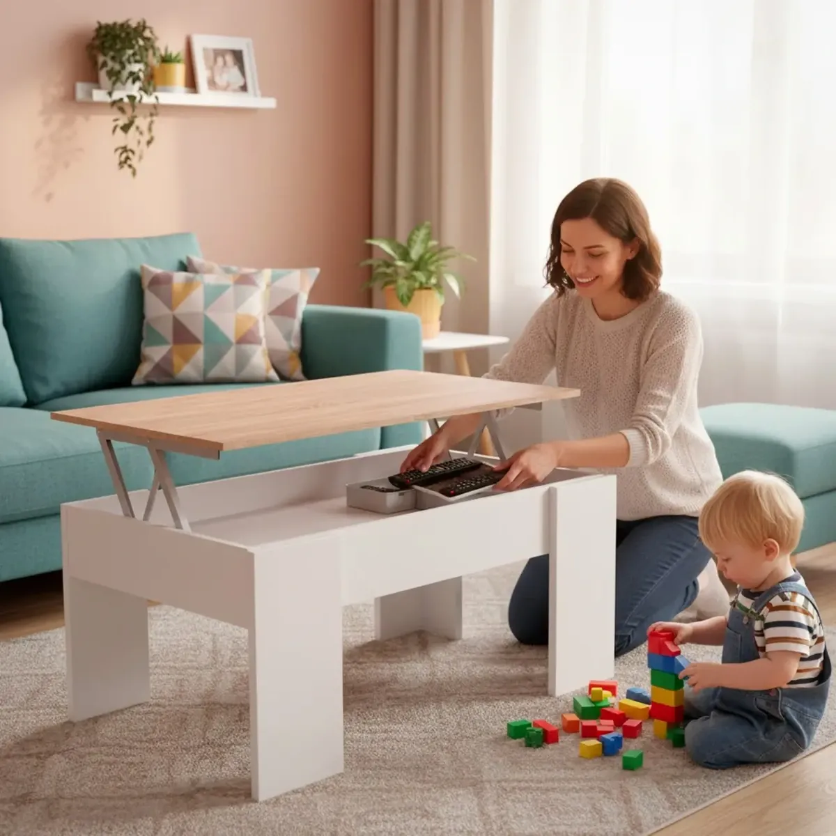 Tavolino da Salotto Alzabile Con Vano Contenitore Tavolo Multifunzione Salvaspazio Per Soggiorno E Divano Piano Sollevabile Per Lavorare e Mangiare 100 x 50 x 54–56 cm