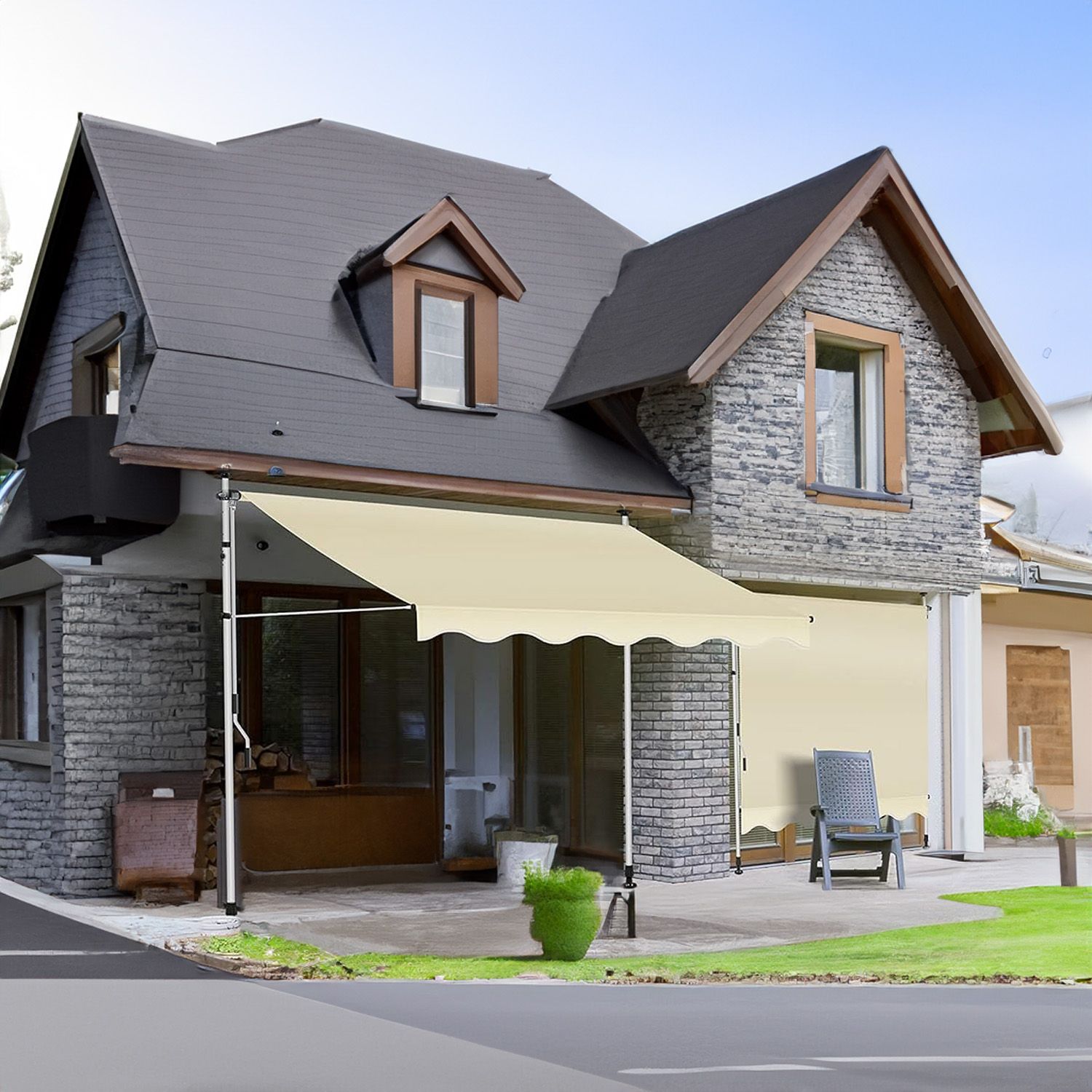 Tenda Da Sole A Morsetto Con Manovella Telo Regolabile Impermeabile Avvolgibile A Bracci Per Balcone Terrazzo Parasole Resistente Ai Raggi UV Telaio Telescopico Senza Foratura