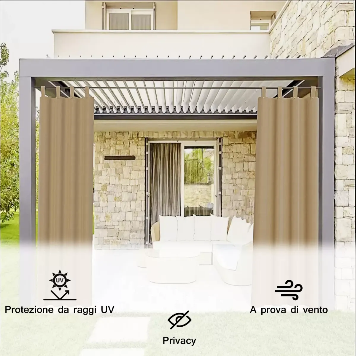 Tenda Gazebo Da Esterno Idrorepellente Resistente Impermeabile Antimuffa Con Passanti E Bottoni Tenda Oscurante Per Giardino Balcone Piscina Terrazzo 150 x 270 Cm