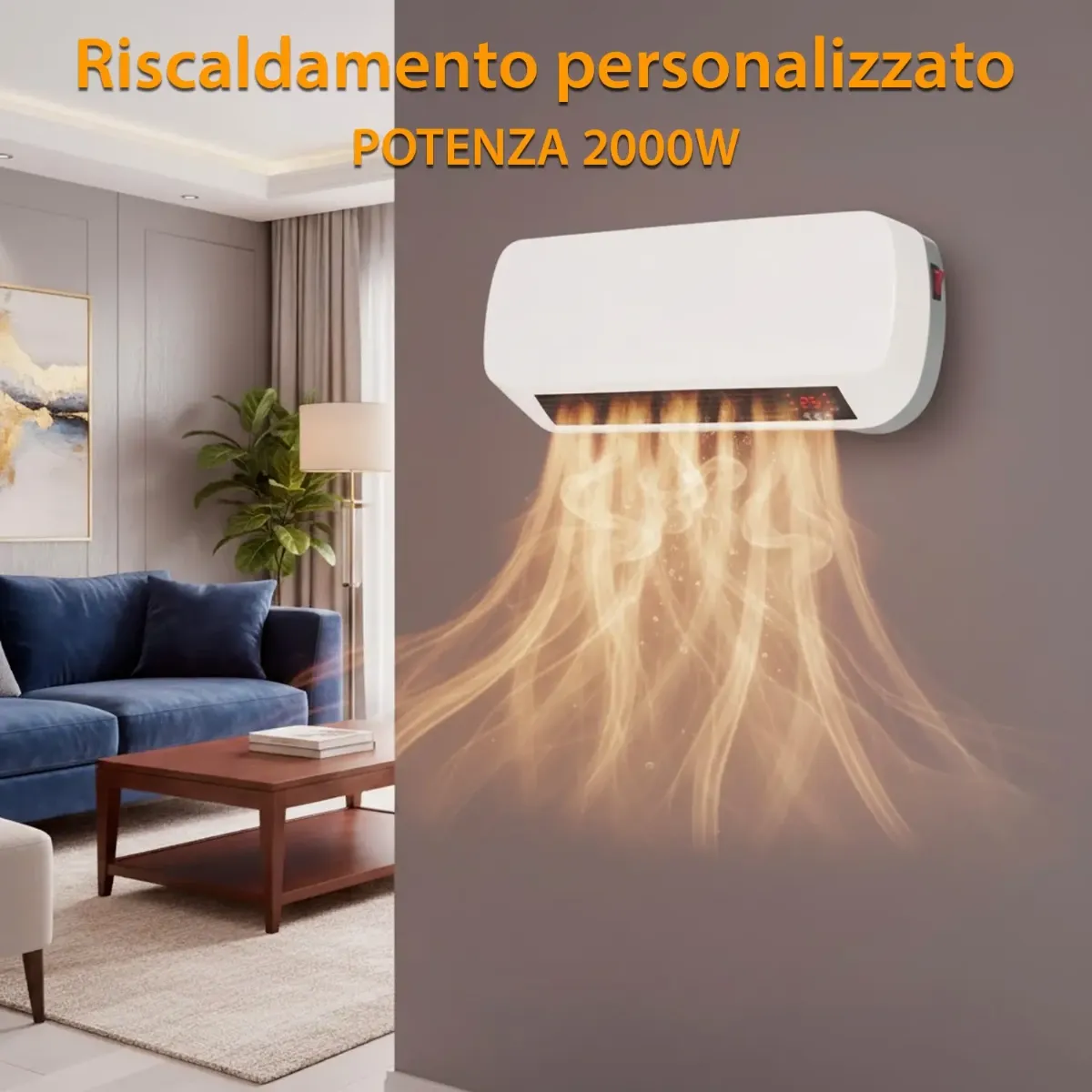 Termoventilatore Da Parete In Ceramica 2000 W Con Display LED Telecomando Timer 12h 3 Modalità Termostato Da 10 a 49°C IP22 Filtro Antipolvere Sicurezza Overprotect 45 x 12 x 19 Cm